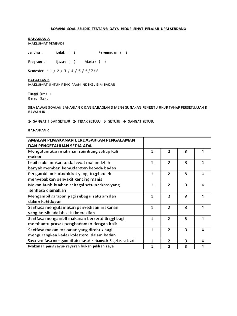 Related posts to contoh borang soal selidik program latihan contoh borang soal selidik program latihan 2018 05 15t06 06 00 07 00 rating. Borang soal selidik kajian penilaian keberkesanan kursus. Borang soal selidik borang soal selidik ini dikemukakan untuk mendapatkan maklum balas dan menilai persepsi masyarakat melayu di daerah pengkalan hulu perak terhadap haiwan fasiq. Bahagian pengurusan latihan kementerian kesihatan malaysia aras 6 no 26.