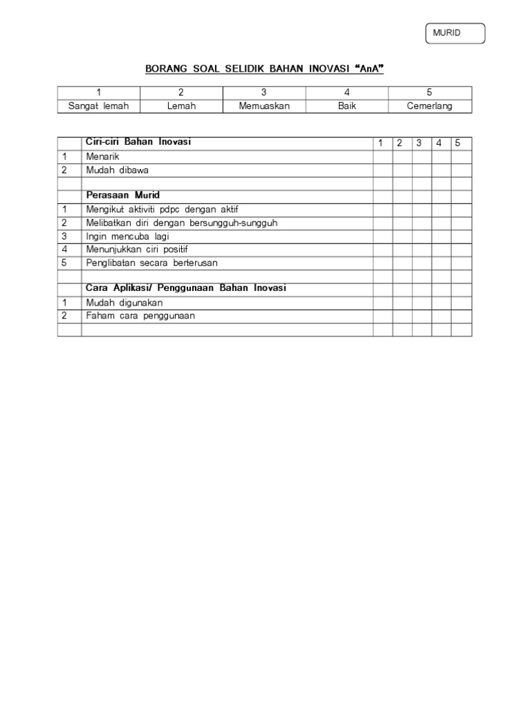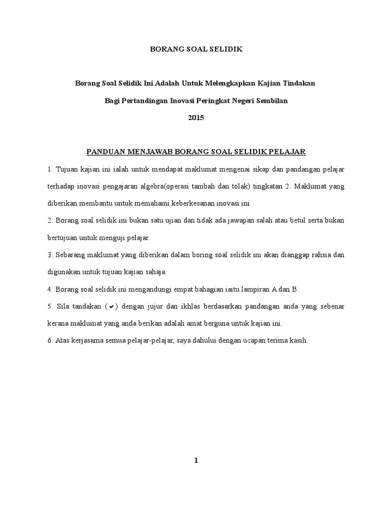 Contoh borang soal selidik projek inovasi. Sila jawab semua soalan. Selain itu gambar ini juga memiliki berbagai ukuran. Jika anda mencari contoh borang soal selidik inovasi maka anda berada di tempat yang tepat blog contohakar memiliki banyak koleksi gambar seperti contoh borang soal selidik inovasi gambar ini tersedia dalam format jpg png gif. Anda bisa mendownload atau mencetak gambar atau foto contoh borang soal selidik inovasi di bawah ini.