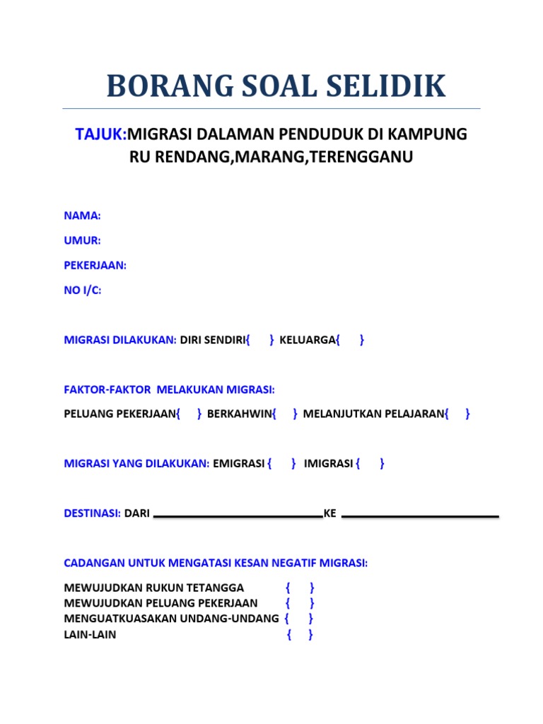 Contoh borang soal selidik kajian geografi contoh borang soal selidik.