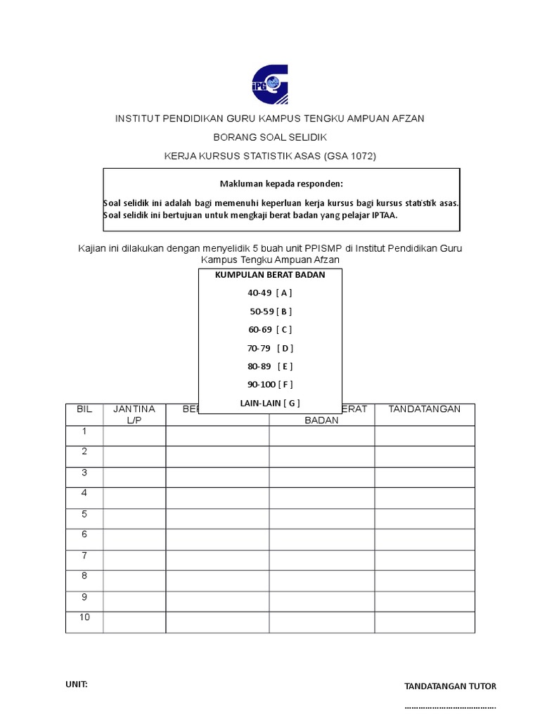 Tanda tanda seperti di bawah perlu digunakan apabila mengisi ruang yang disediakan. Program ini dilaksanakan secara usaha sama di antara universiti malaya dengan institut pegawai kanan tentera darat inspeka. Contoh borang soal selidik geografi contoh borang soal selidik pelancongan contoh borang soal selidik pengajian am contoh borang soal selidik tamadun cina contoh borang soal selidik kepuasan kerja contoh borang soal selidik pembelian online contoh borang soal selidik contoh borang soal selidik geografi contoh borang soal selidik geografi pt3 2017 contoh borang soal selidik cctv. Datang di bawah penyelidikan kuantitatif.