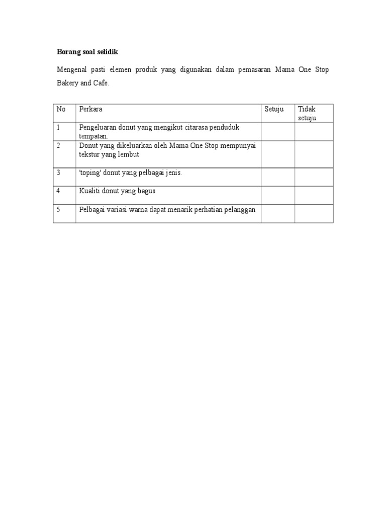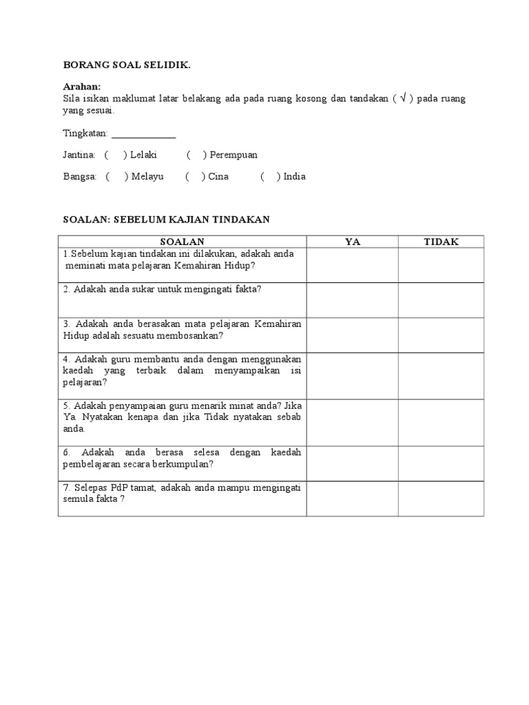 Contoh Borang Soal Selidik Yang Terbaik