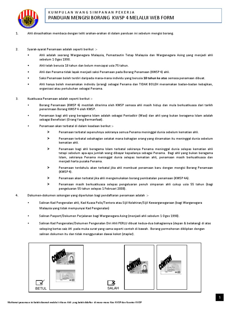 2020 05 29 rumah atau kereta. Penamaan boleh dibuat dengan mengisi borang di i akaun print dan perlu di hantar ke pejabat kwsp. The nominee did not apply for death withdrawal within one 1 year from the date of the member s death. For name or status change such as sole proprietorship to partnership employers must notify the epf within 21 days of change using the form kwsp 1 maj.