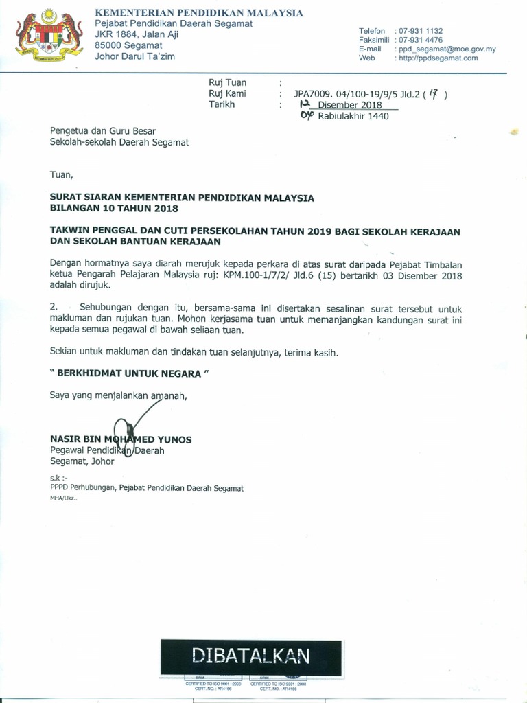 Kementerian pendidikan menegaskan tidak pernah mengeluarkan sebarang surat pekeliling menarik balik kebenaran cuti tambahan sempena deepavali kepada sekolah sekolah menengah yang memohon. Jabatan perkhidmatan awam malaysia subject. Pekeliling perkhidmatan bilangan 4 tahun 2019 author. 4 tahun 2019.